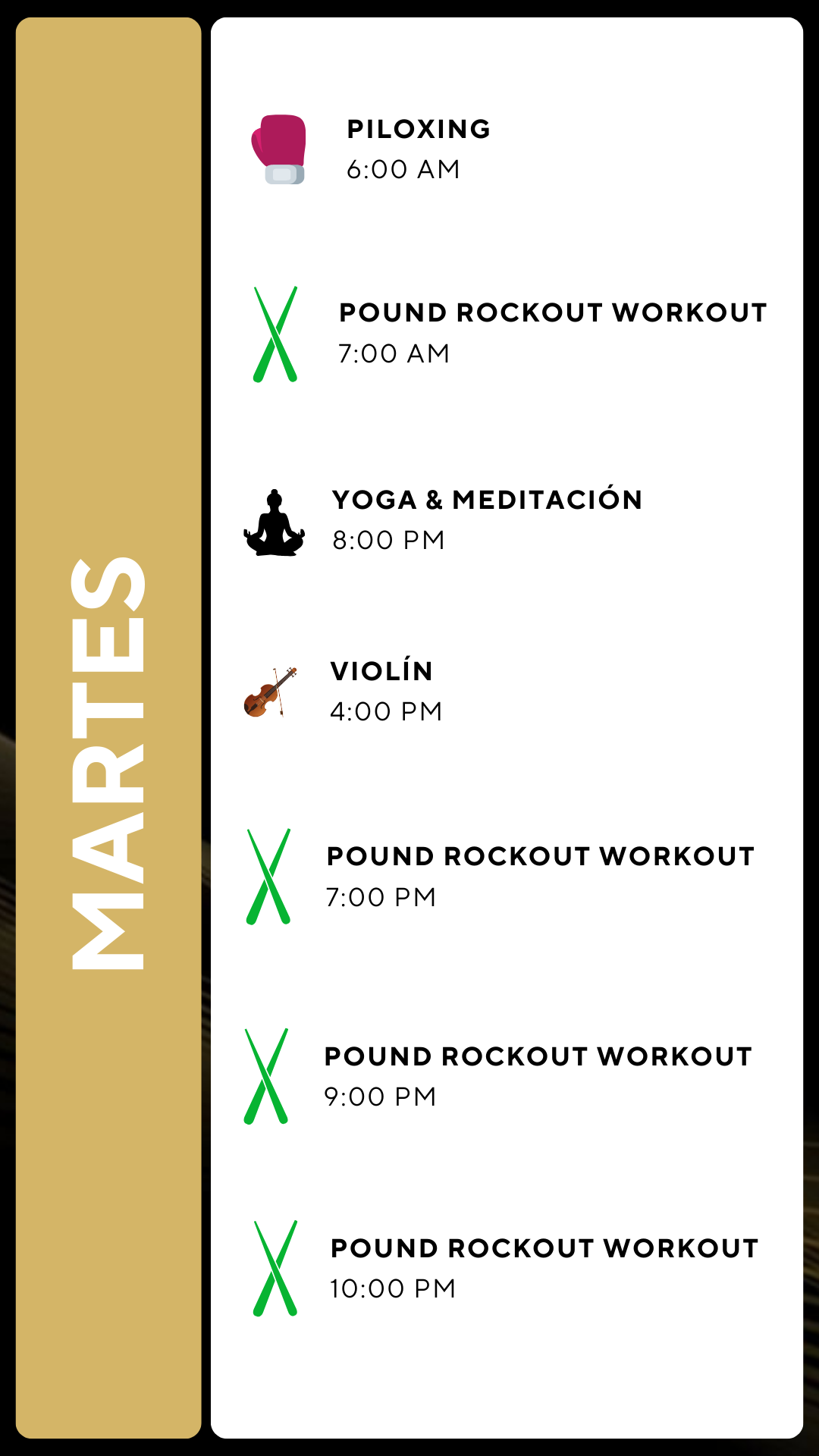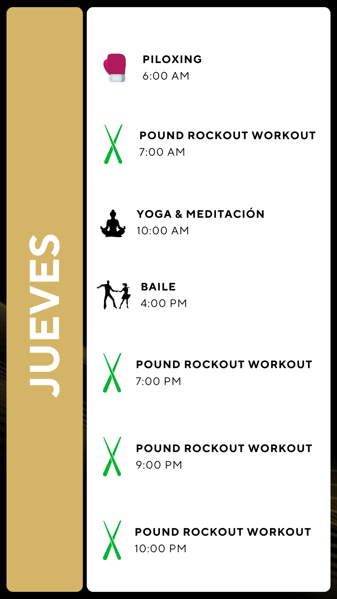 | 7:00 am | Piloxing | Pound | Piloxing | Pound | Piloxing | |